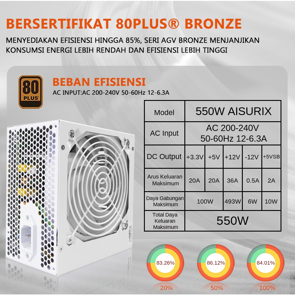 AISURIX PSU 550W/650W 80PLUS Bronze wer Supply 650W Gaming 550 Watt 80+ Bronze White