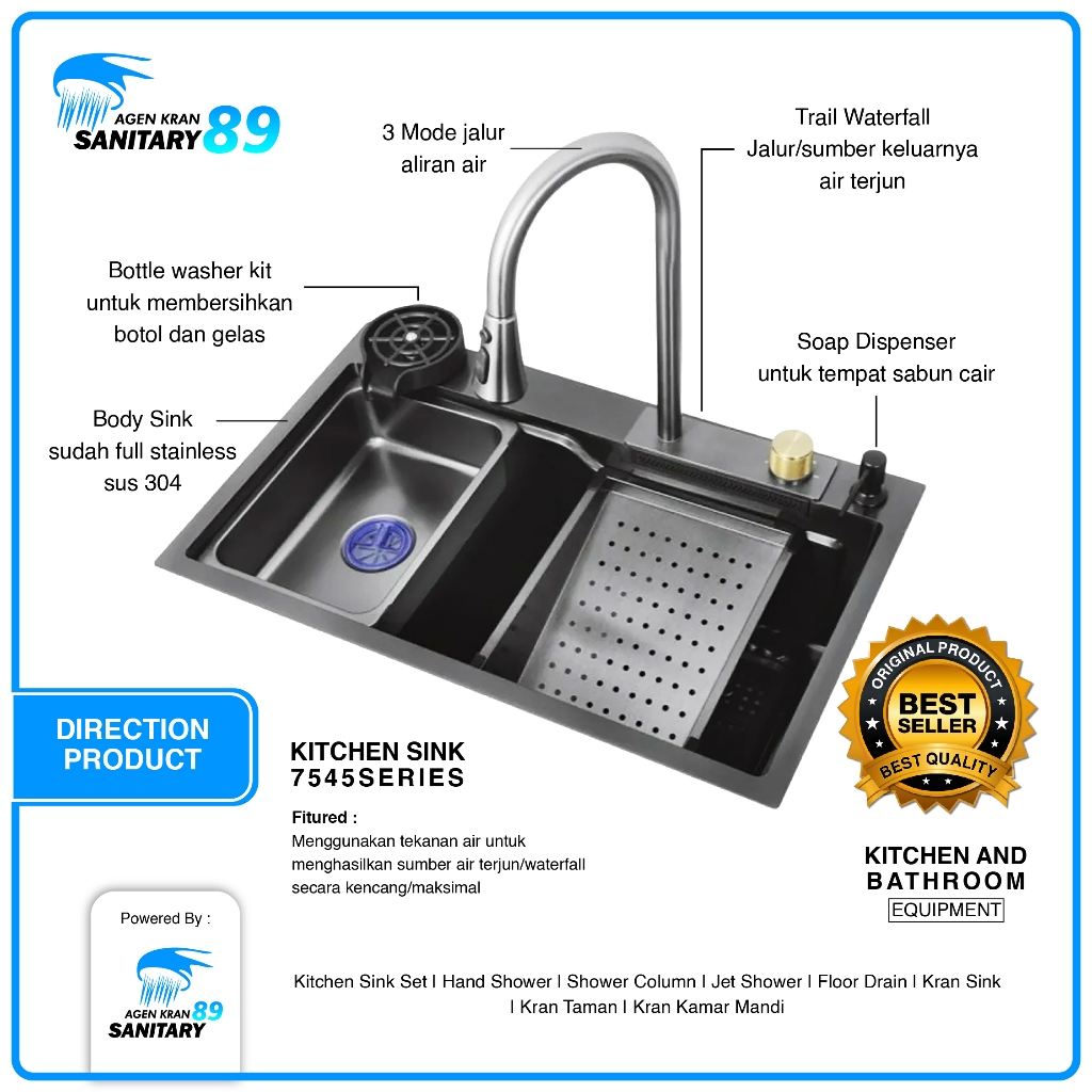 WASTAFEL CUCI PIRING 7545/WASTAFEL CUCI PIRING STAINLESS/KITCHEN SINK MODERN LUXURY 7545 BLACK STAINLESS STEEL 304