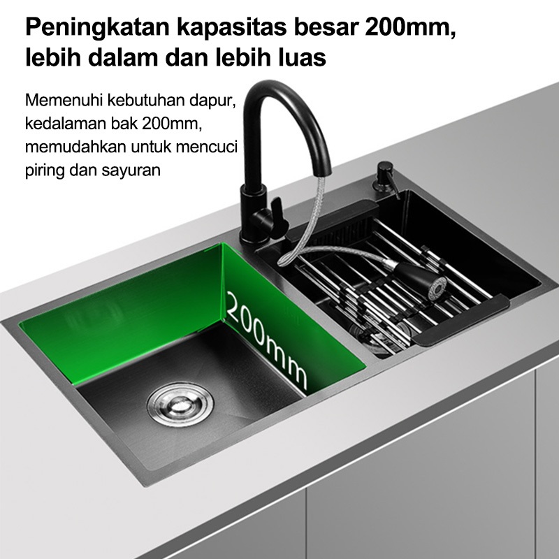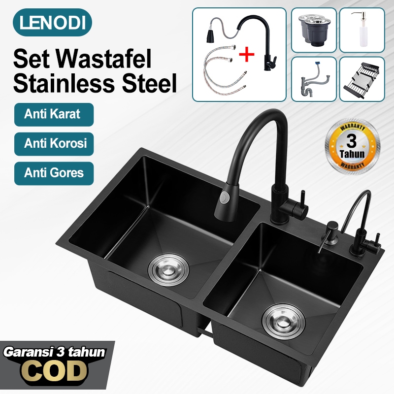 Lenodi Bak cuci piring /Paket Kitchen Sinks BLACK /SUS 304 Bak Cuci Piring Stainless HITAM Ketebalan 3.0mm Kitchen