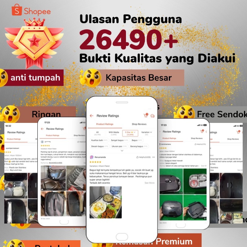 Stainless 304 ecentio lunch box stainless 1000ml kotak makan anti tumpah tempat bekal makan tempat makan free sendo