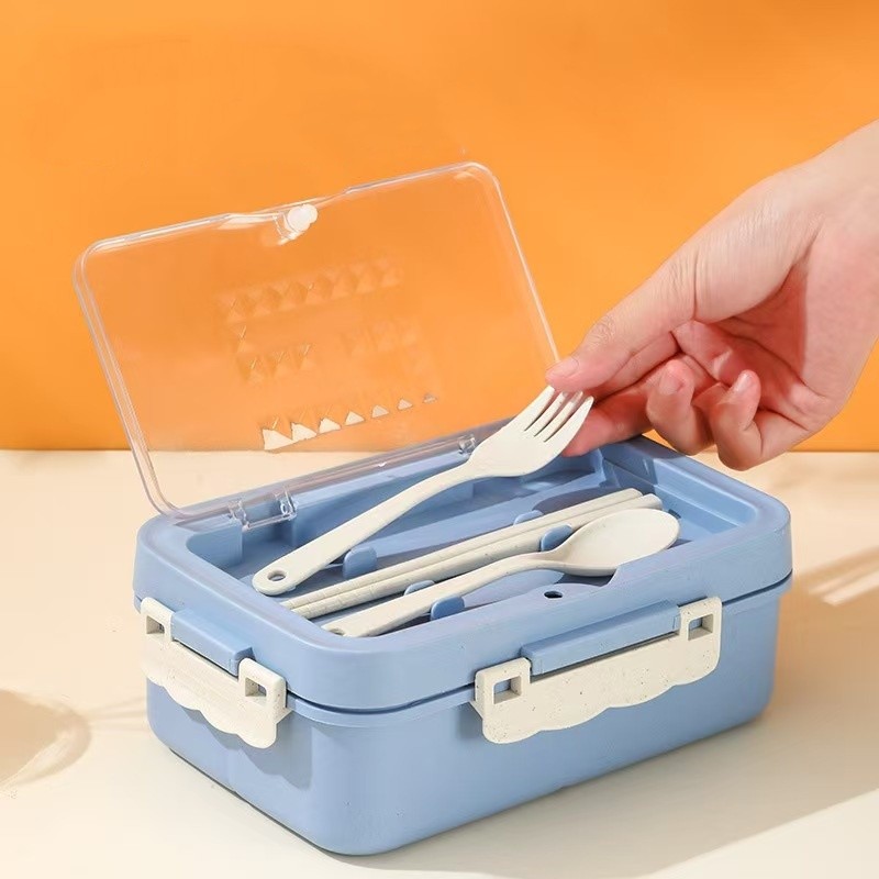 VOOVA Set Kotak Bekal Makan 1000ml 4 In 1/ Lunch Box Dengan Sendok/ Set Alat Makan