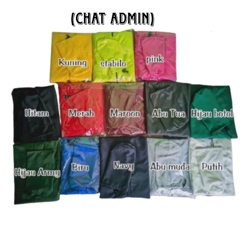 Hitam, Navy, Maroon, Biru, Hijau botol, Army, pink, Stabilo, ABU MUDA, ABU TUA