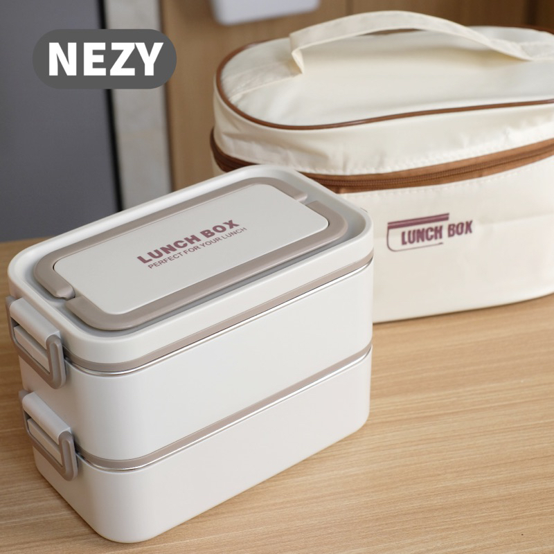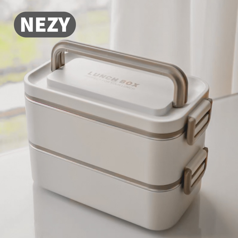 NEZY Premium Kotak Makan Stainless Steel 304 2 Tingkat Bekal Makanan Bontot White Lunch Box Nordic Aesthetic Style