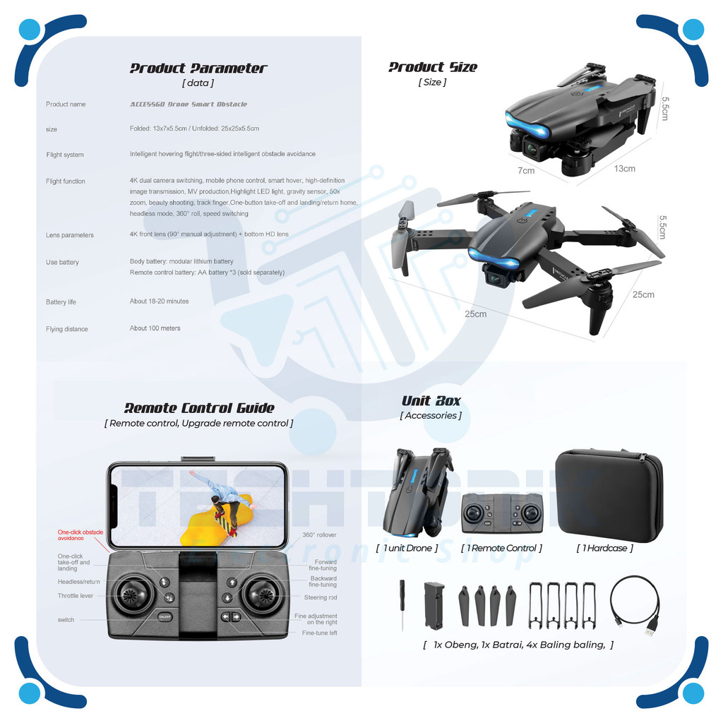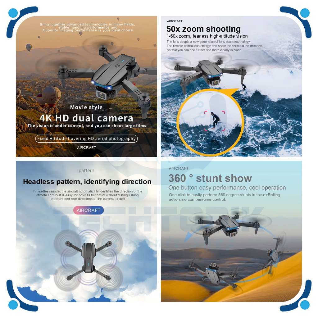 Drone E99Pr0 Dual Camera Video Ultra HD Baterai 1800mAH BERGARANSI