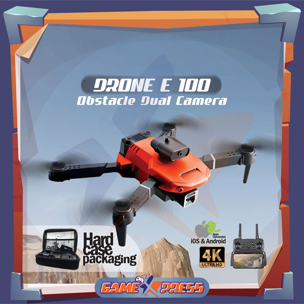 Drone E100 Sensor Anti Tabrak Dual Kamera Obstacle Avoidance Camera 4K UltraHD BERGARANSI RESMI - GameXpress