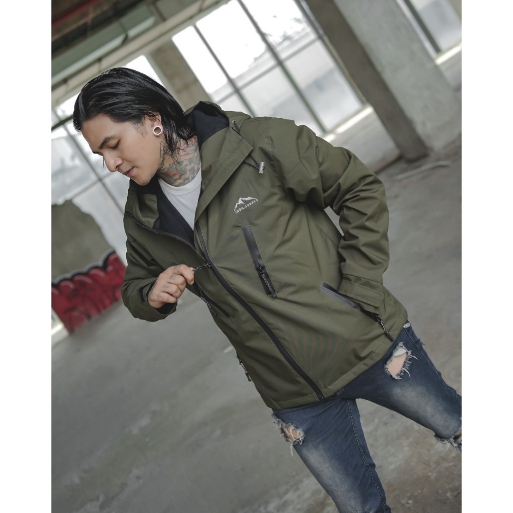 Jaket Parasut Pria Gorpcore Premium - Jaket Gunung Waterproof Anti air Original Indigo
