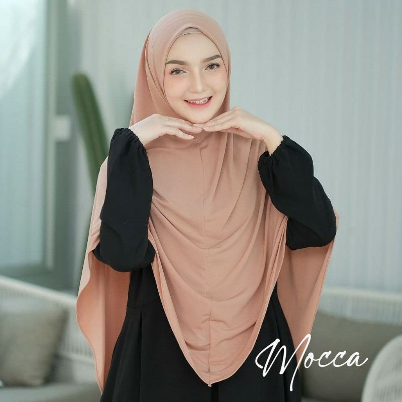 Jilbab Nadine Khimar Syari Non Pet – Hijab Bergo Malay Jersey Oval Cut Polos, Simple L & XL