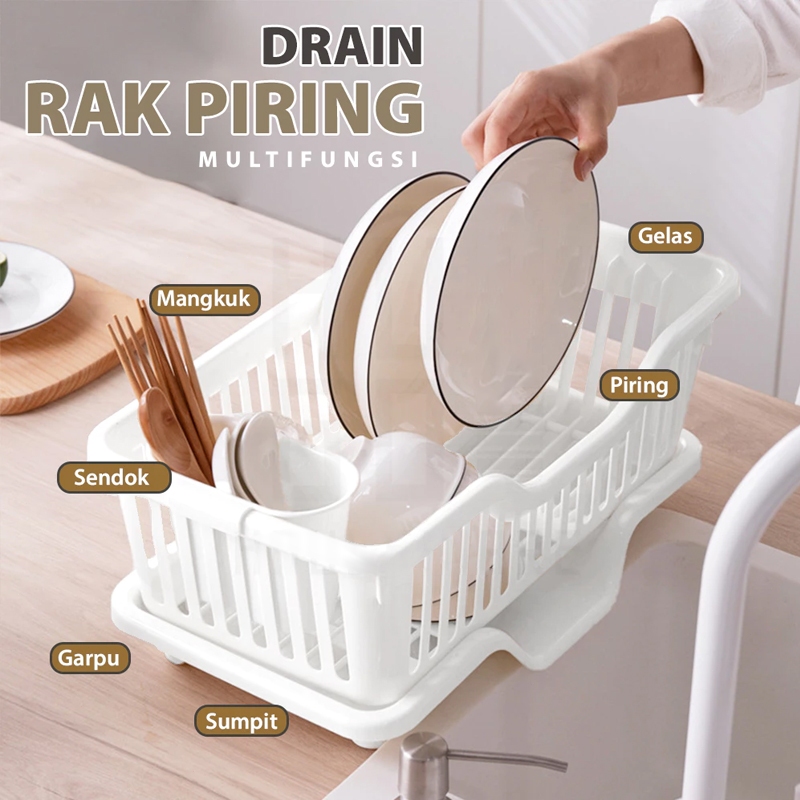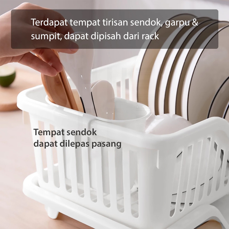 Roxart Rak Piring Dengan Tirisan Air Tempat Penyimpanan Sendok / Garpu / Mangkuk Estetik