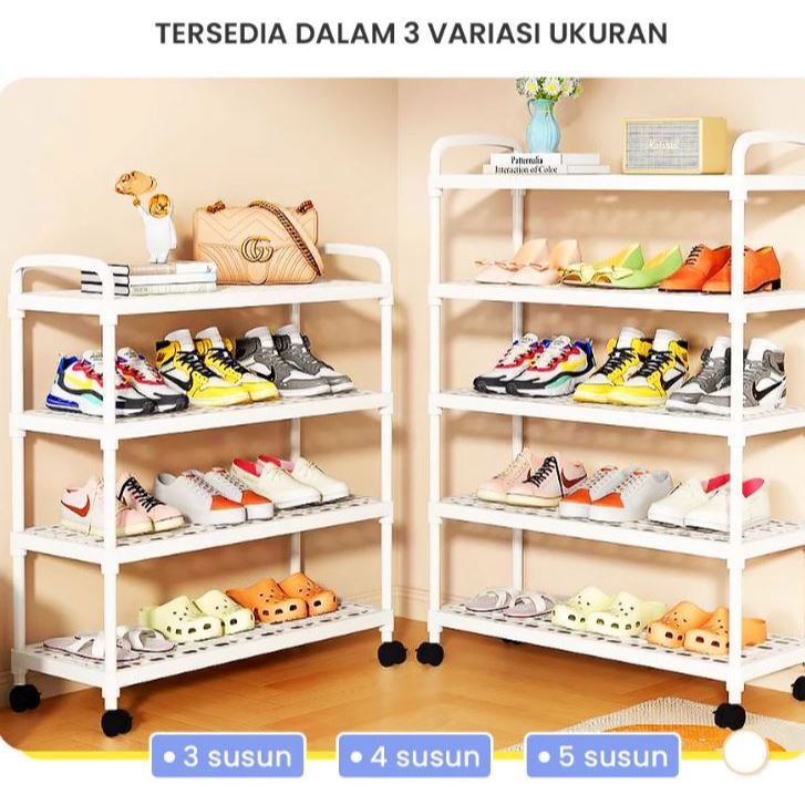 Rak Sepatu Multifungsi Rak Dorong - Rak Penyimpanan Stylish Plastic Kokoh Premium - FR-004-W