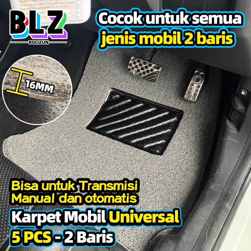 BOLIZUN Karpet Mobil 5 Pcs 2 Baris Universal - Mie Bihun PVC - Ketebalan 16MM/ Universal bisa diaplikasikan ke semu