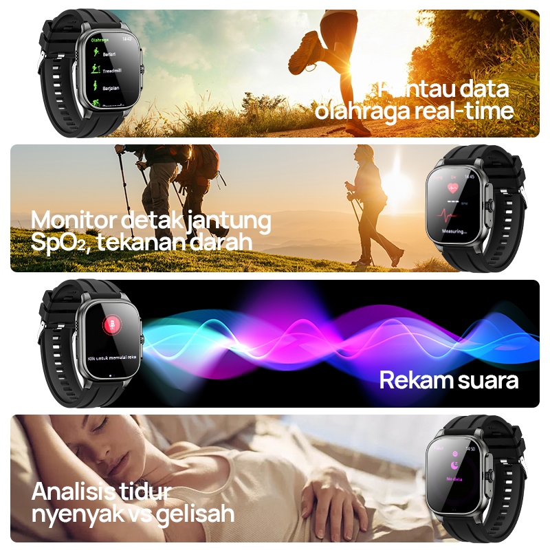 Smartwatch Muslim Premium - Titanium, IP68, Audio Quran 114 Surah, Tasbih Digital, Alarm Shalat, Kalender Hijriah, Deteksi Kesehatan, hadiah lebaran