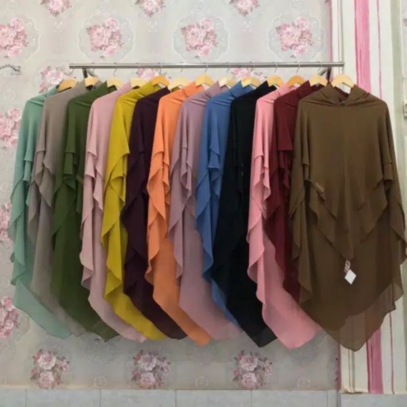 KHIMAR L 2 LAYER HIJAB JUMBO CERUTI ARMANI BABIDOL PANJANG 115X80CM JILBAB KHIMAR