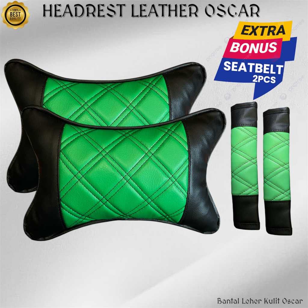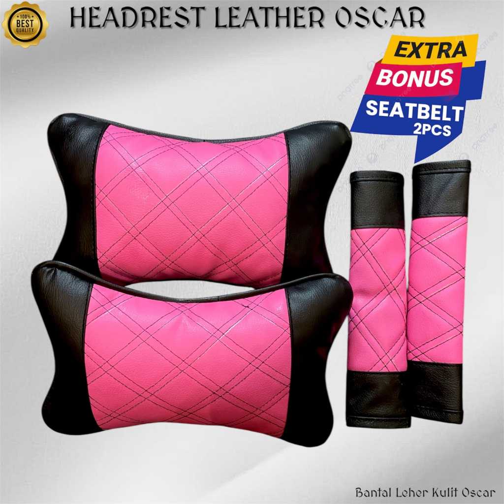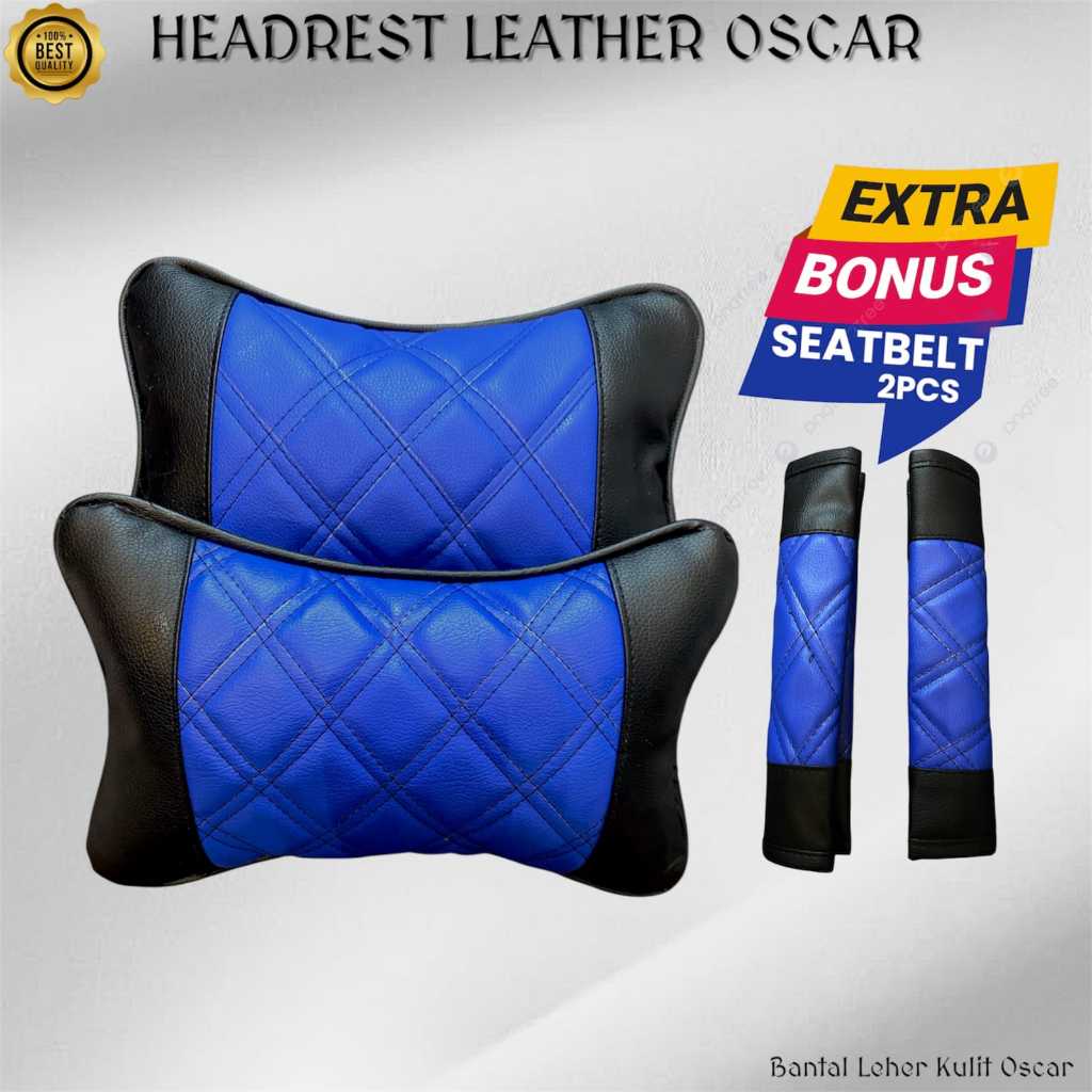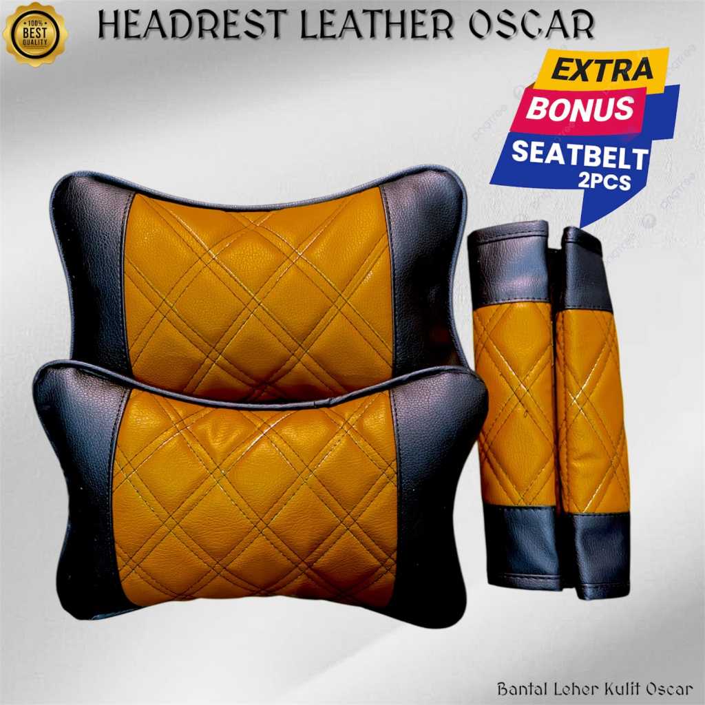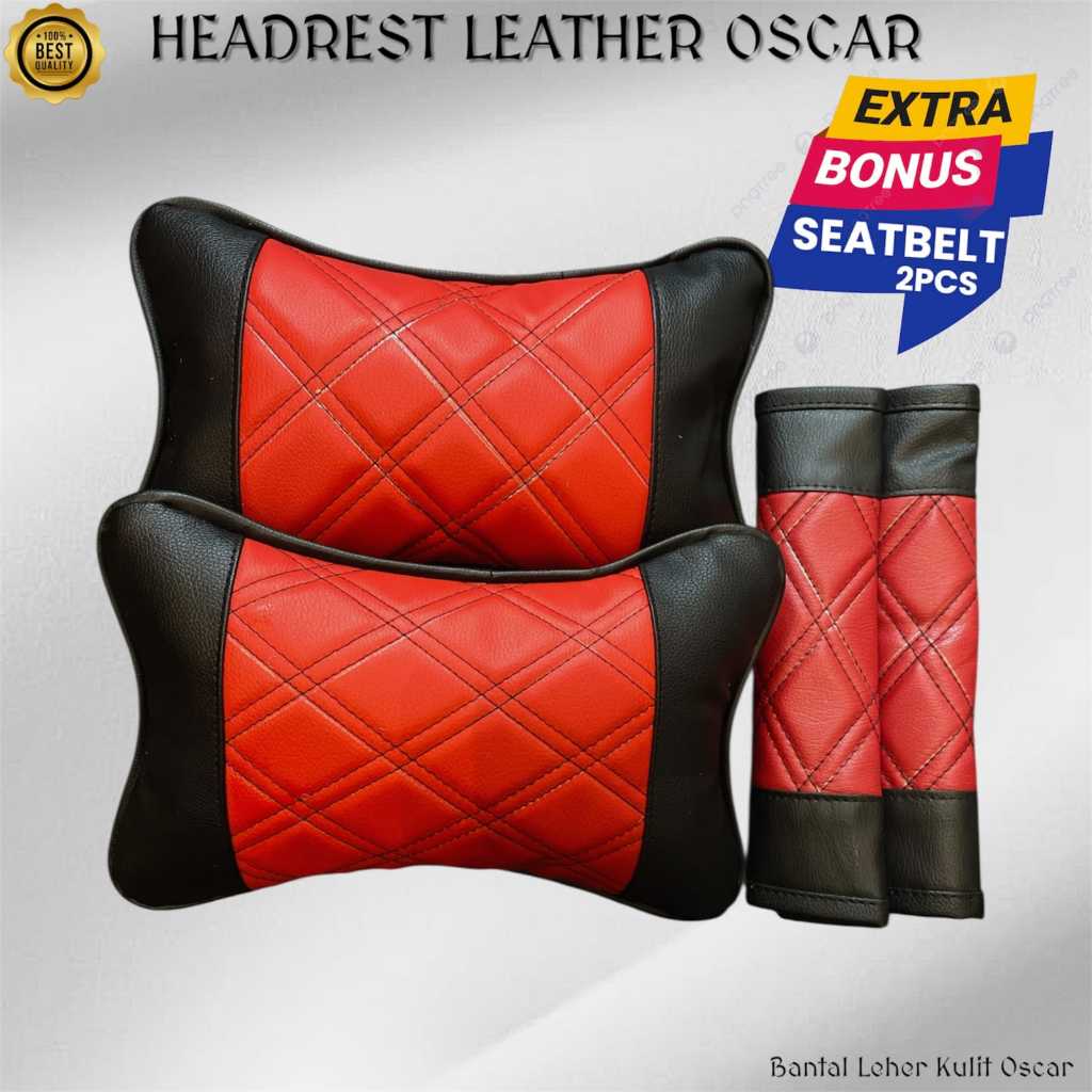 Paket Bantal Leher Mobil Kulit Oscar Bonus Cover Seatbelt Sabuk Pengaman Headrest Sandaran Kepala