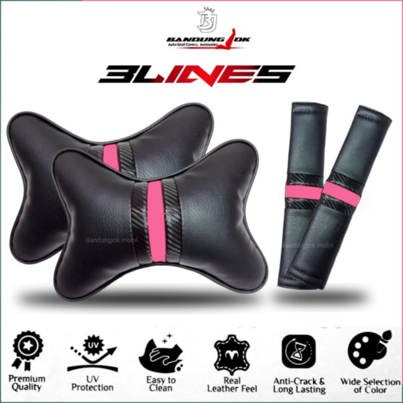 Bantal mobil set 2 in 1 Bantal leher kulit sintetis premium Bantal leher Bantal headrest