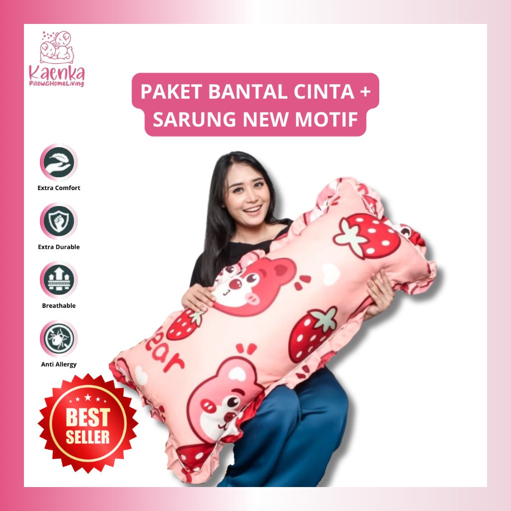 PAKET BANTAL CINTA + SARUNG NEW MOTIF UK.50X100 ISI 900GRAM