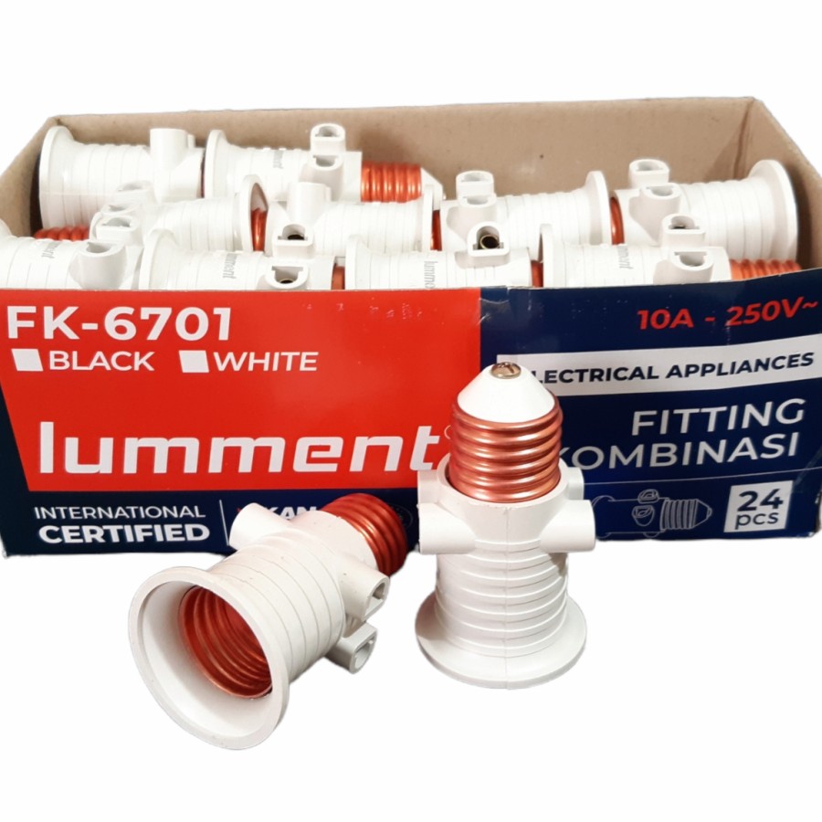 Fitting Lampu Colok Kombinasi Lumment FK 6701 Colokan Sambung Listrik E27 Pin Kuningan SNI Teras