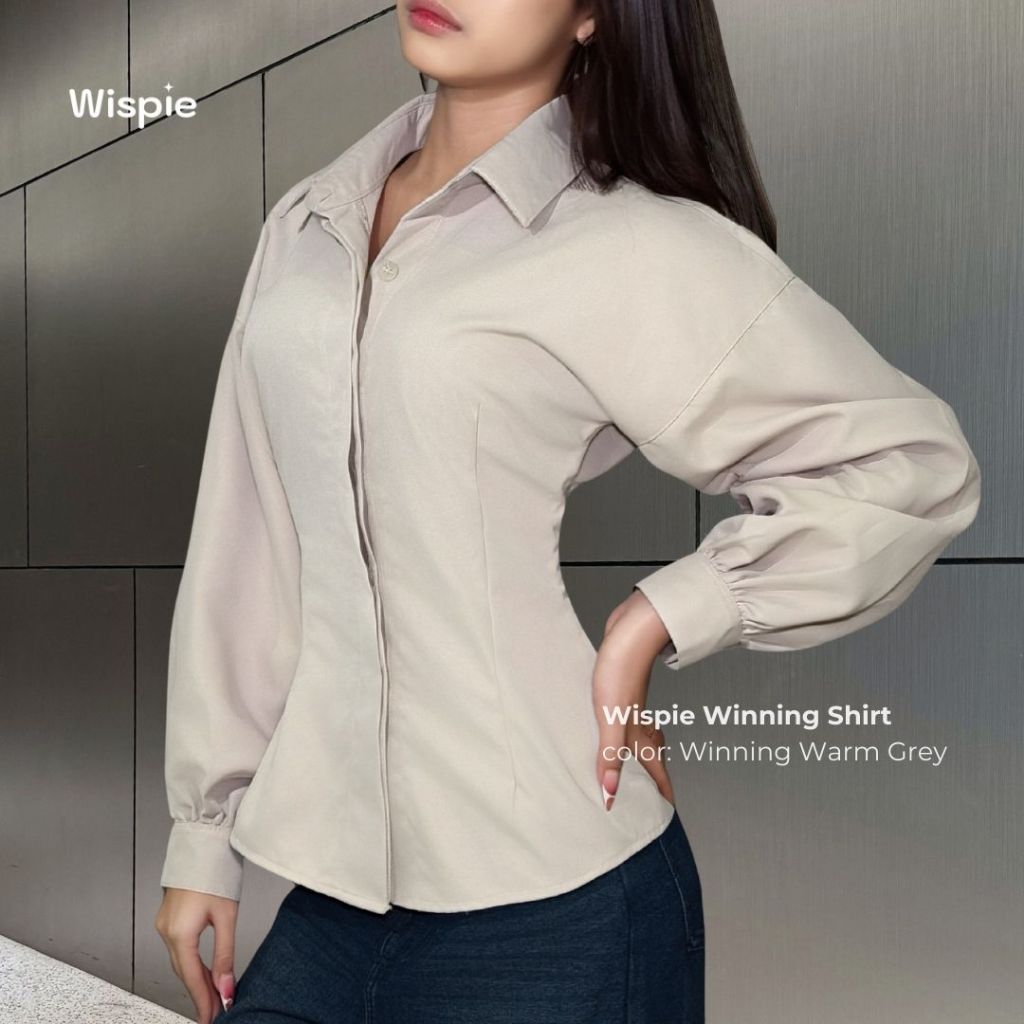 Wispie Winning Shirt | Kemeja Fitted Blouse Lengan Panjang Wanita Warm Grey Hitam