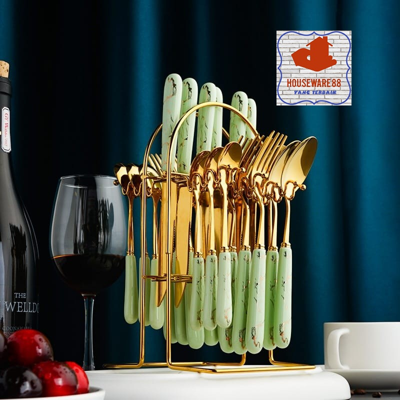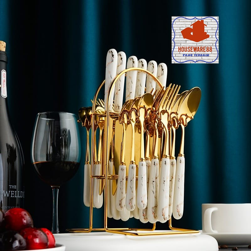 Sendok Cutlery Set Sendok Sultan Makan Set Isi 24 Set Gold Marble Sendok Makan Set Bahan Stainless Tebal Rapi Golden Spo
