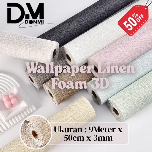 Donmi - Wallpaper Dinding Linen Roll Ukuran 9meter×50cm Motif Polos - Dekorasi Kamar Aesthetic