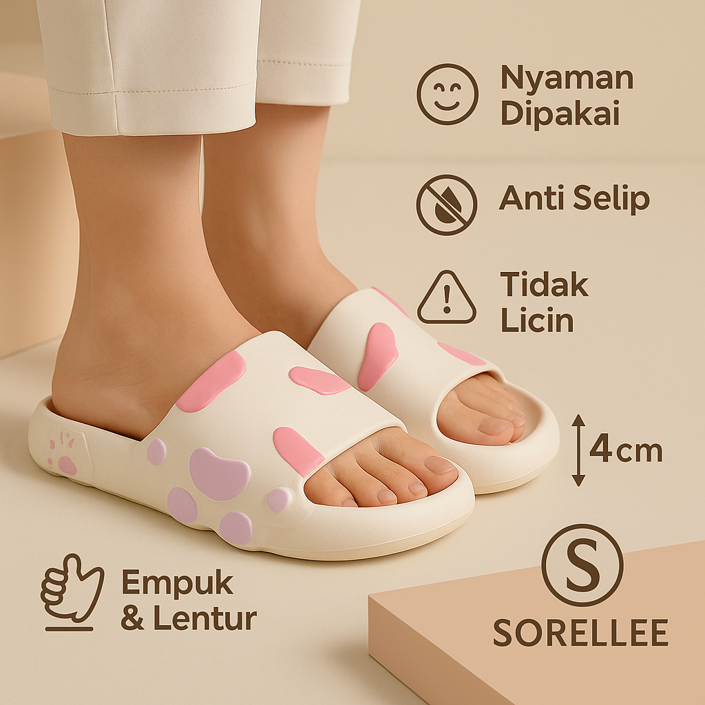 SANDAL BAIM WANITA MOTIF PAW BAHAN EVA JELLY GAYA KOREA 2025 TERBARU RINGAN ANTI SLIP