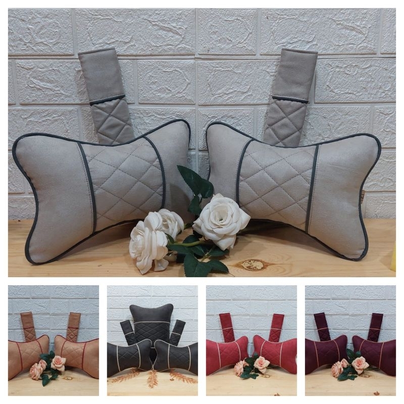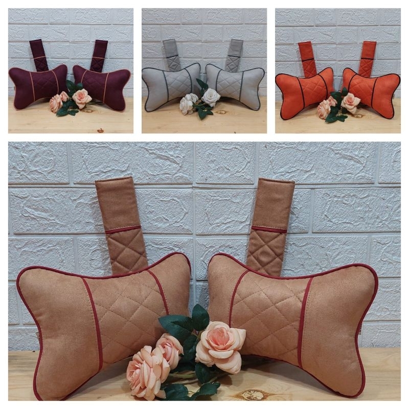 ZIRA Set Bantal Mobil Suede Cover Seatbelt Headrest, Senderan Kepala Bahan Suede, Sarung Sabuk Pengaman, Bantal Kep