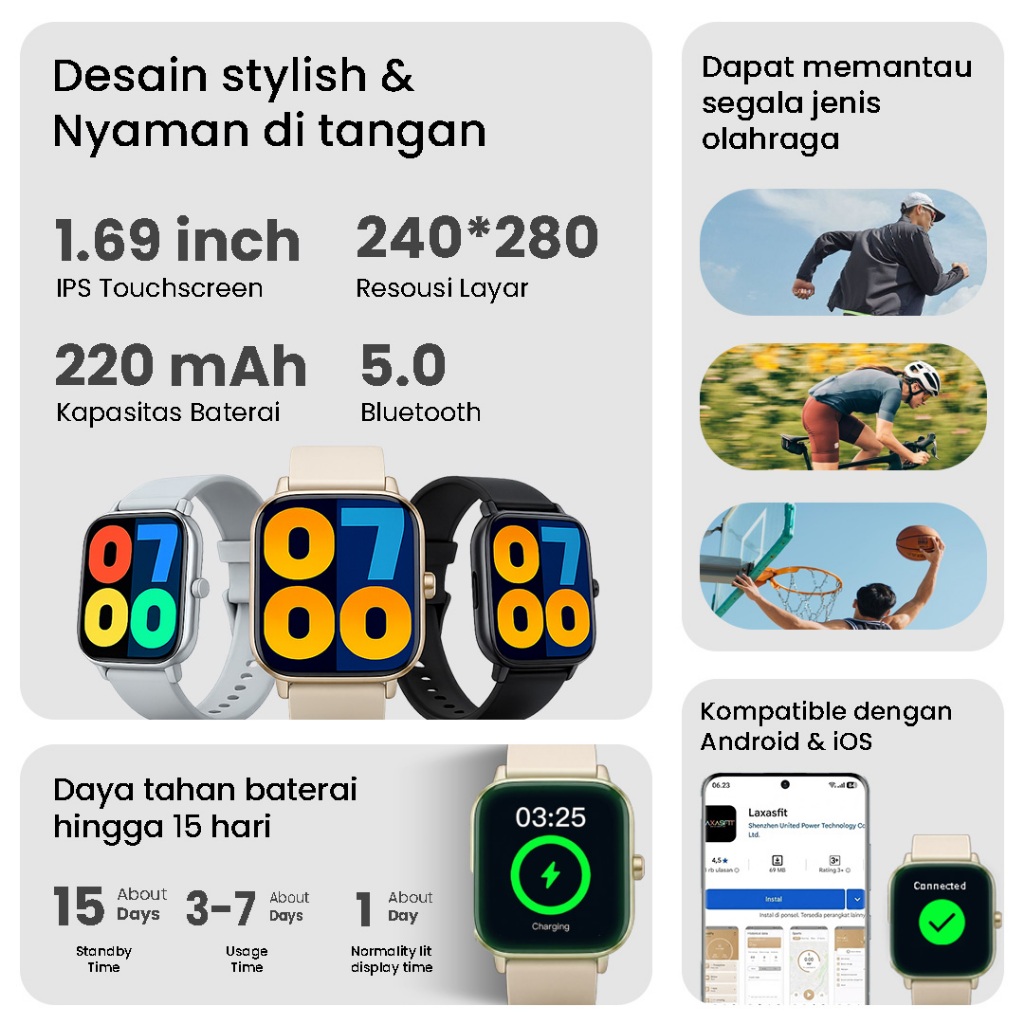 Stuftech Smart Watch Lite Watch Face | Pemantau Kesehatan 24 Jam | Layar HD 1.69" | Panggilan BT | Tahan Air IP68 Smartwatch