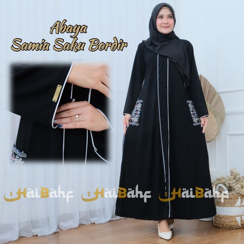 Gamis Abaya Arab Hitam List Busui Bahan Jet Black Saudi Kwalitas Terjamin