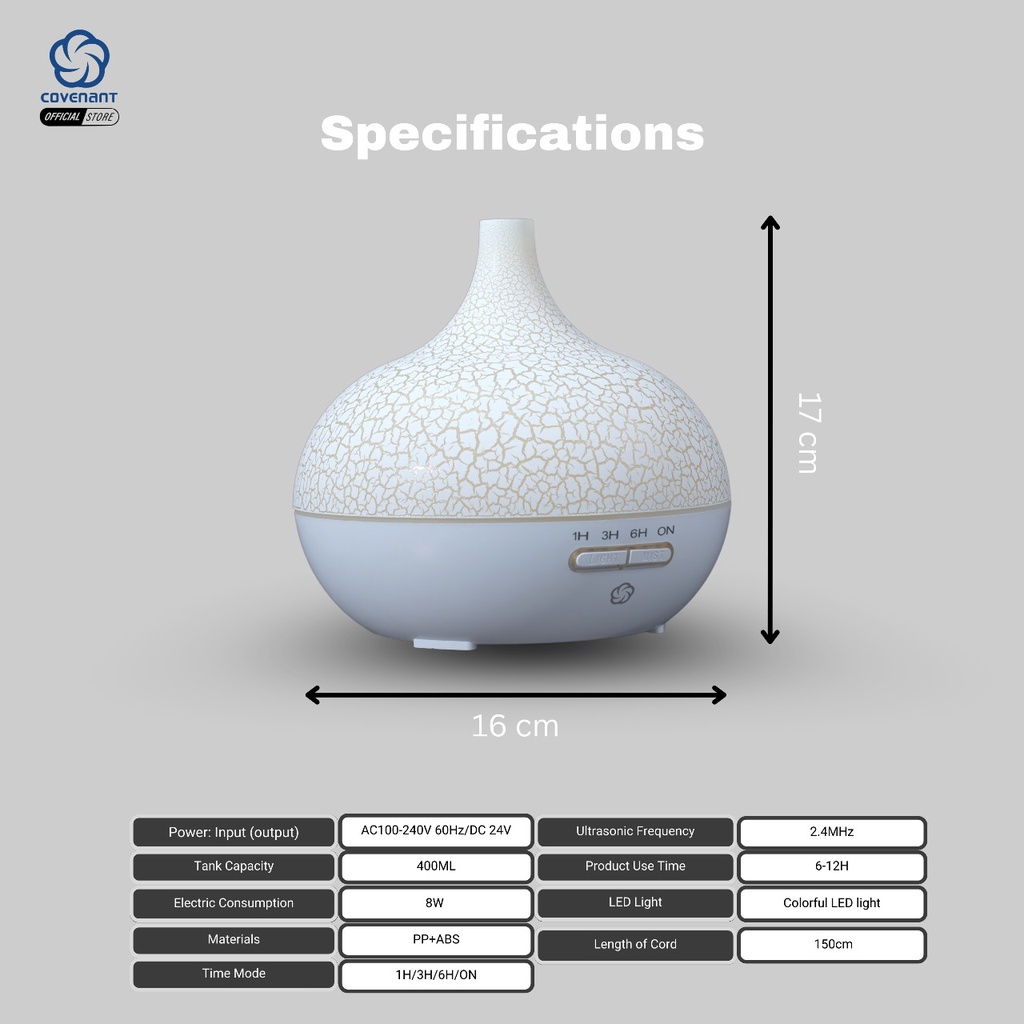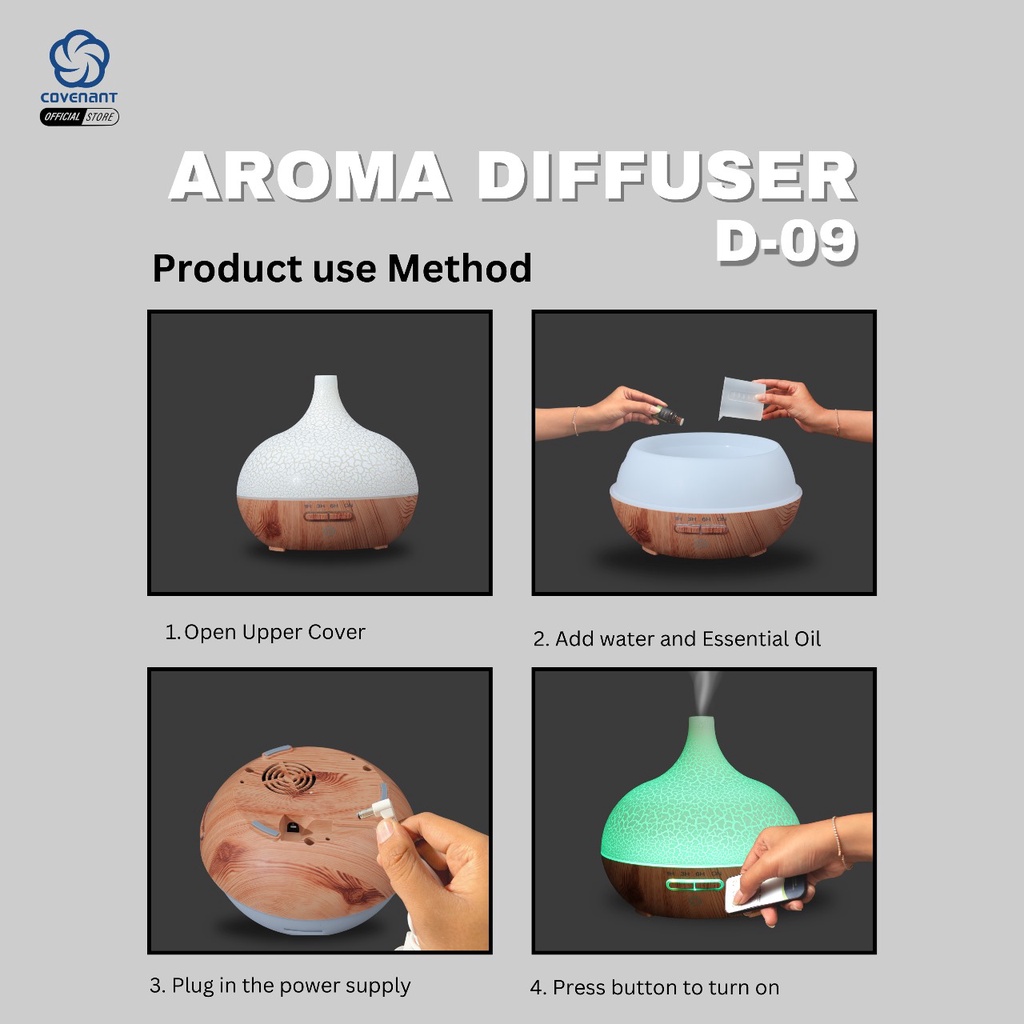 Covenant Humdifier Diffuser 400ml D09 Aroma Theraphy Essensial Oil + Remote 7 LED Color