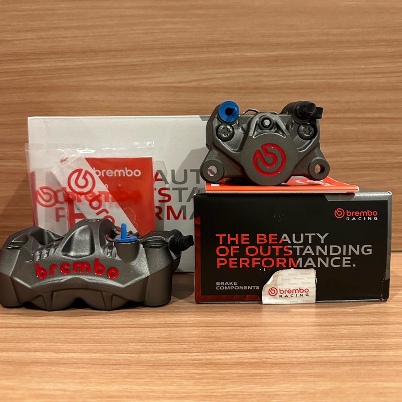 Kaliper Radial Monoblok Brembo GP4RS Pitch 108 Kanan dan 2P 34 grey red logo original Brembo Italy