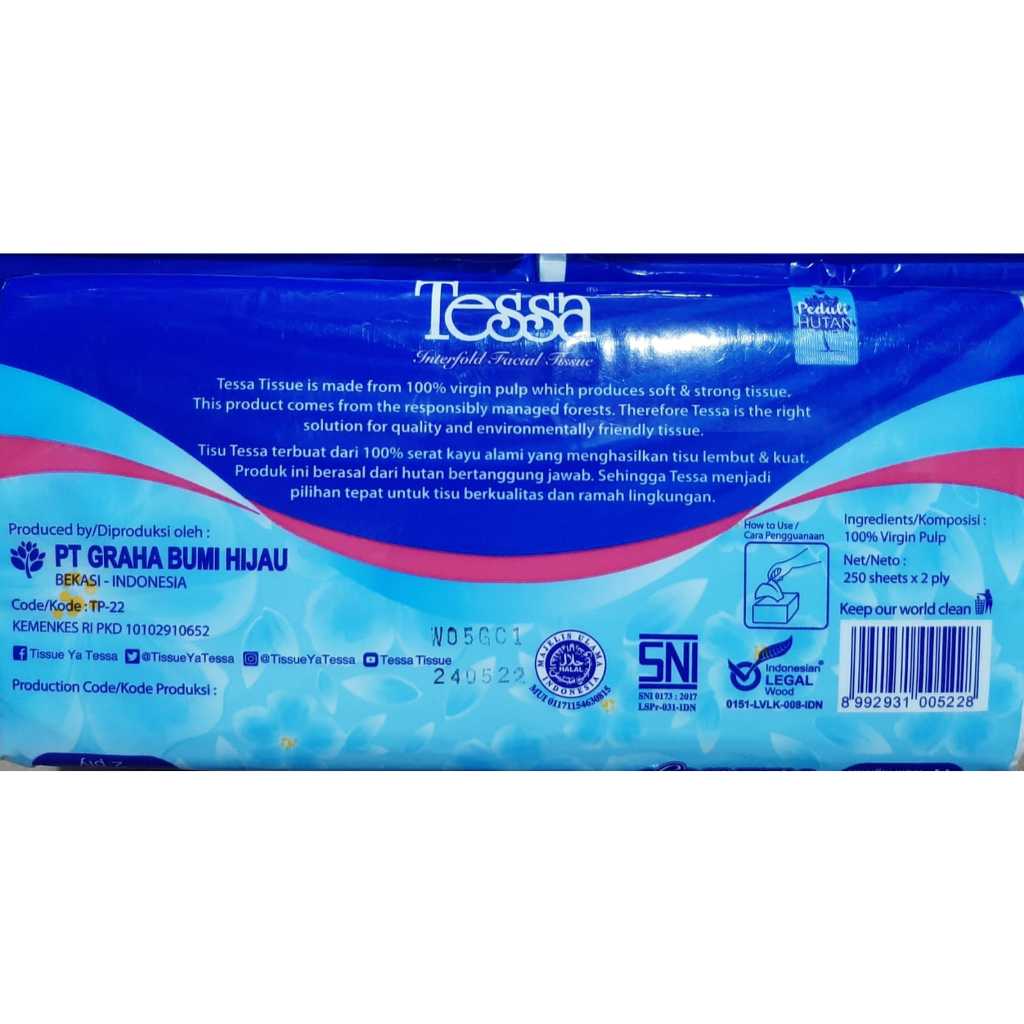 6 Pcs x 250 Sheets TESSA Facial Tissue 2 Ply TP-22