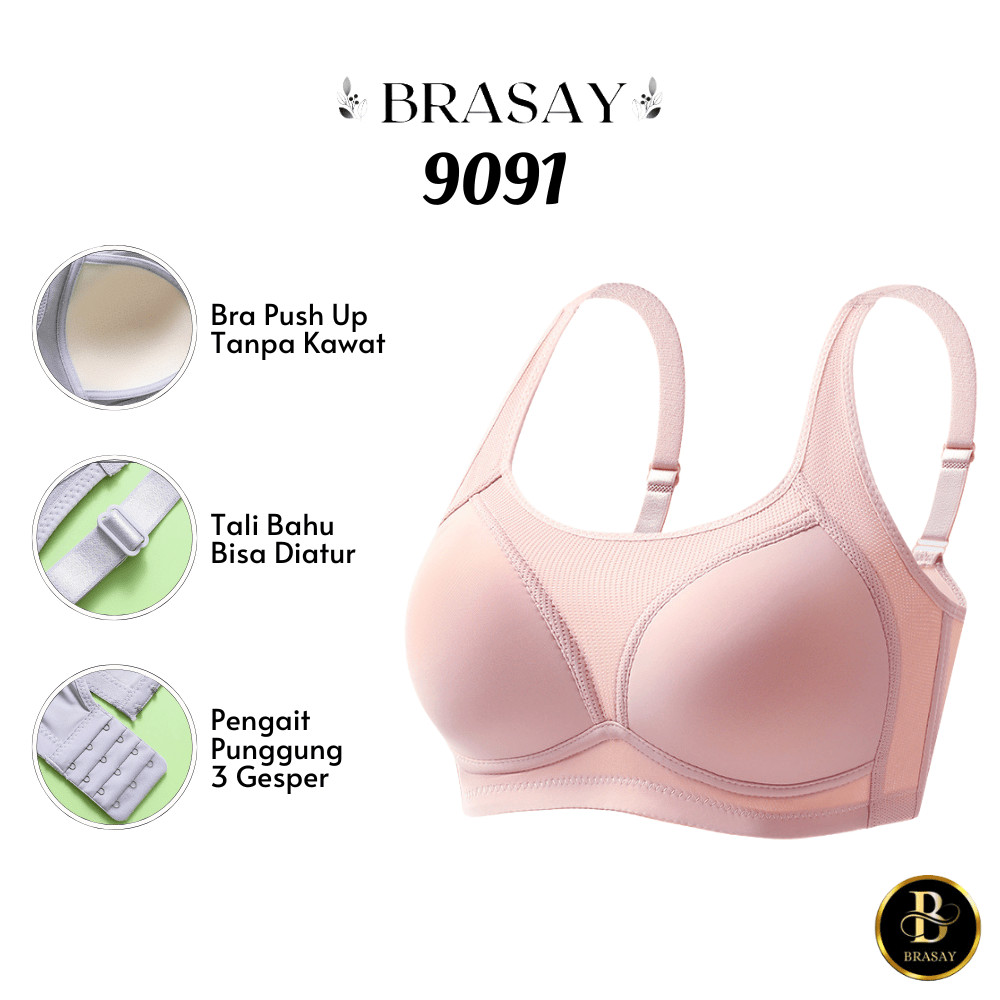 Brasay Bra Wanita Tanpa Kawat Busa Tipis Bahan Katun CUP B Kait 3 Breathable 9091 Murah Gratis Ongkir