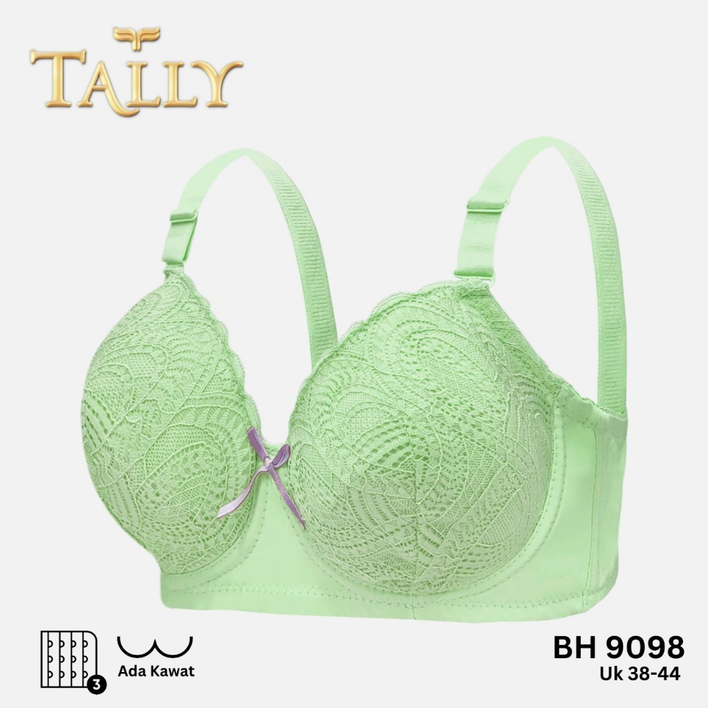 TALLY Sarwendah BH 9098 Bra Wanita Ada Kawat Busa Tipis Bahan Katun Renda Cup B C Kait 3 Bra Fashionable Pakaian Dalam W