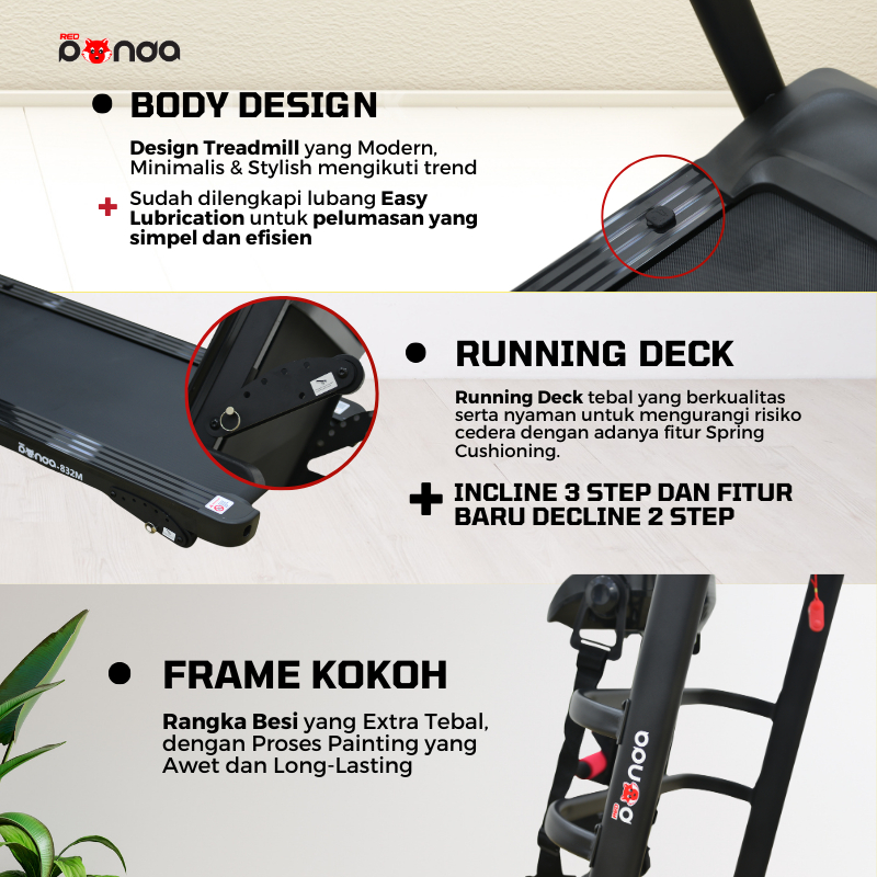 Treadmill Elektrik REDPANDA 832M Multifungsi Listrik Lipat Portable Low Watt Fitness Gym