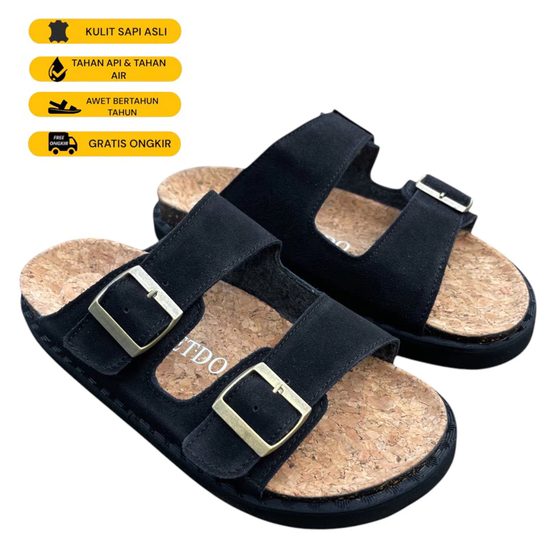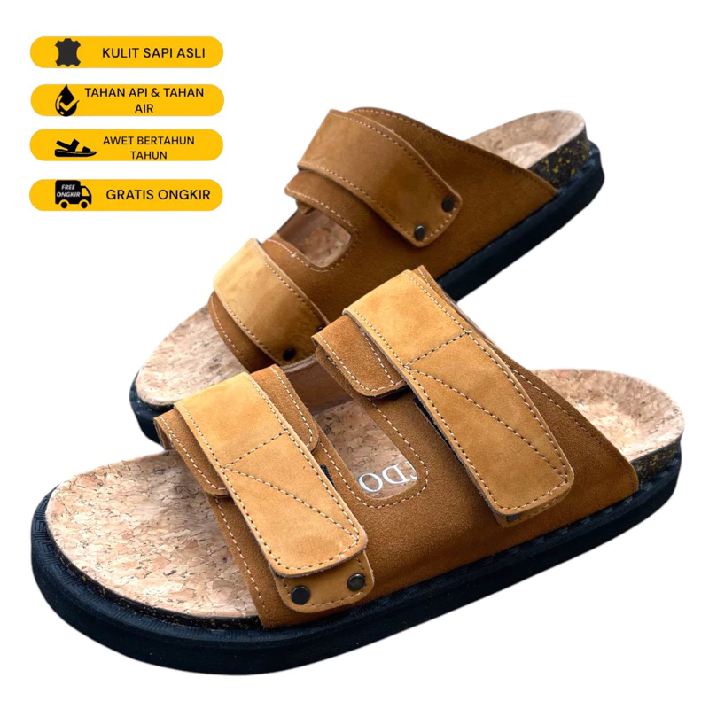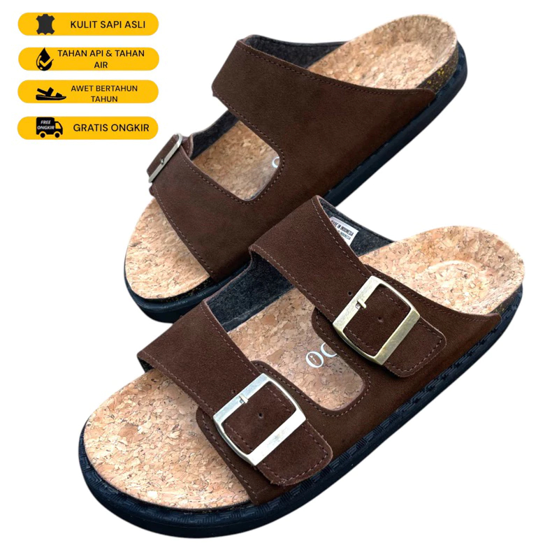 sandal kulit sapi birkenstockk original dari kulit 1000% Pria Sendal Jepit Kasual