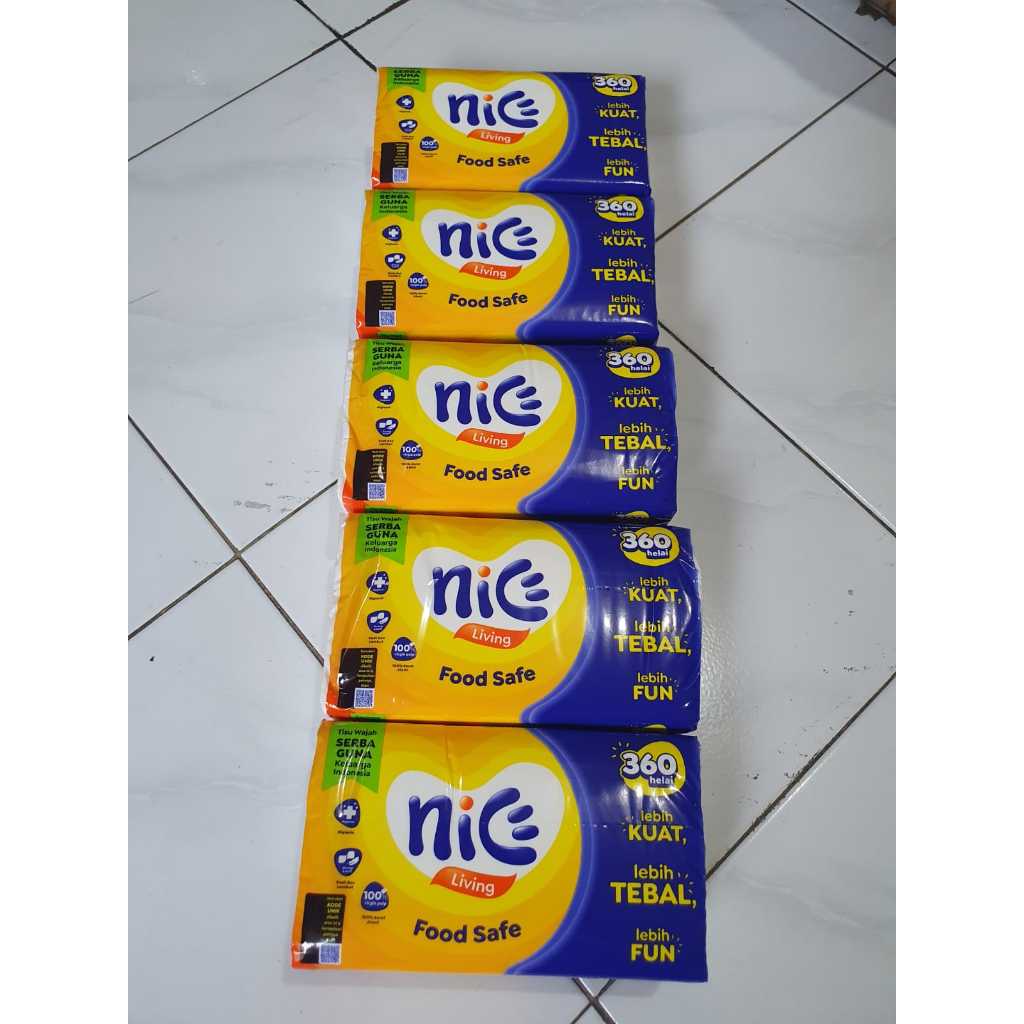 (5Pax) Tisu Nice 1 Paket isi 5 pax tisu 360 helai / 180 lembar Facial Tissue 2 Ply Halal