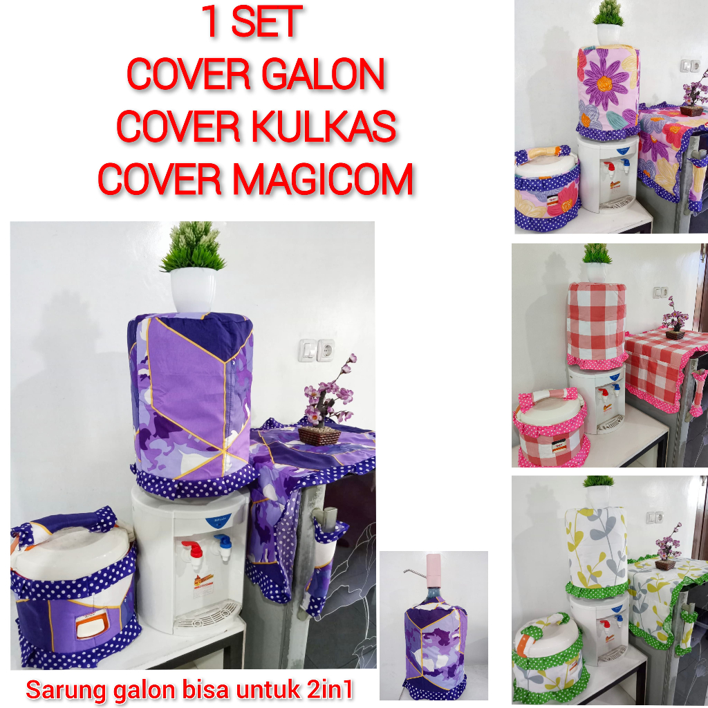 Tutup Kulkas Sarung Galon Cover Magicom 1 Set Lengkap Aneka Motif