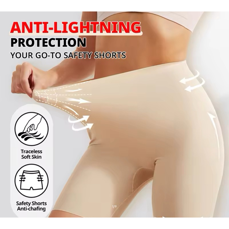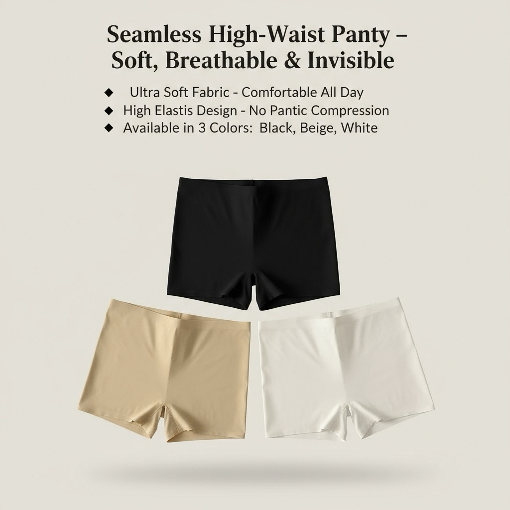 Pure Color Ice Silk Women's Underwear Breathable Cotton Crotch Mid Waist Seamless Anti Exposure Safety Pants Flat Angle