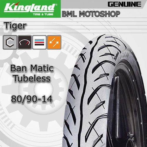 Ban Motor Tubeless Kingland 80/90-14 Tiger Ban Motor Matic Ring 14 Ban Luar Motor