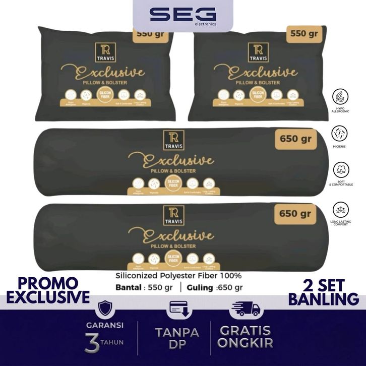 Bantal Guling Set Dewasa Paket Bundling Tidur Hotel Mewah Travis 45x60 Pillow Dark Grey Berkualitas Inoac