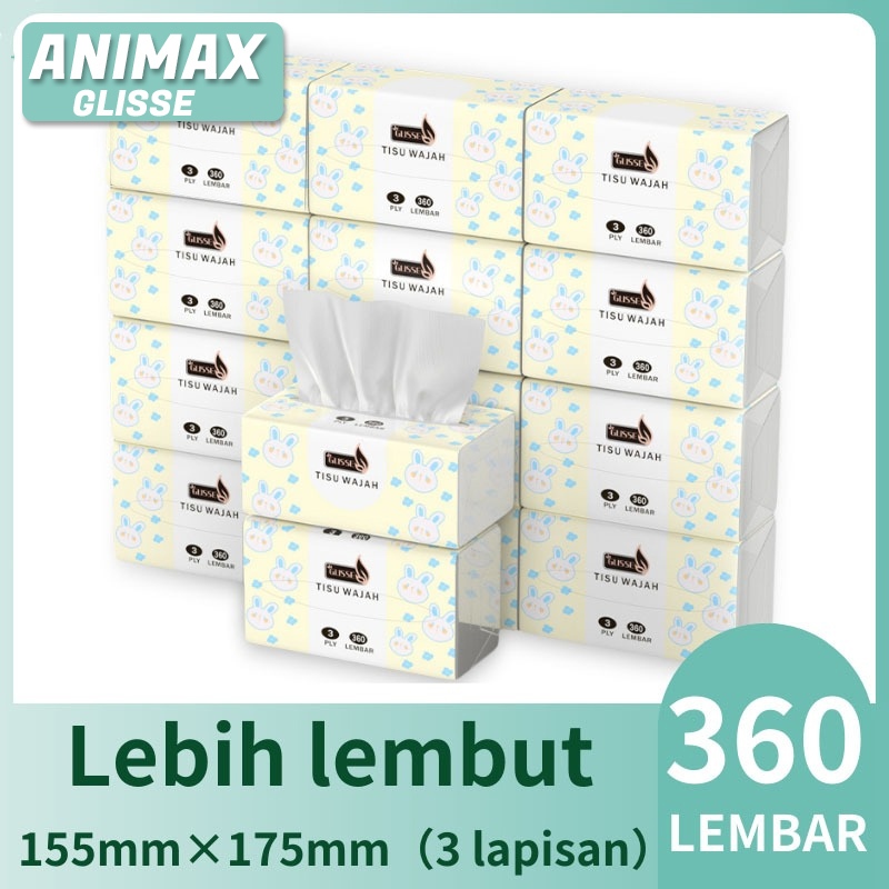 (12/20 pack)ANIMAX-glisse Tissue Tisu Soft Facial Tissue 360 sheets 3-Ply Tissue murah Car home tissue