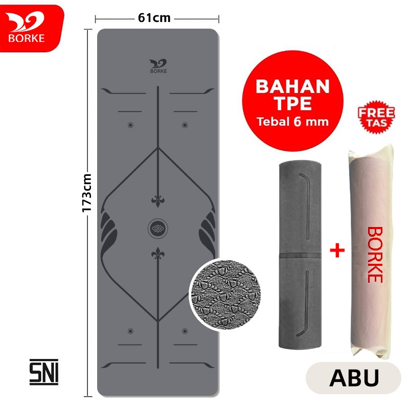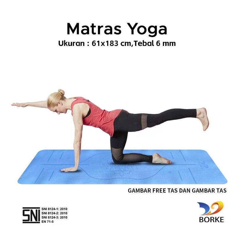 BORKE Matras Yoga TPE NBR 8mm - Karpet Senam Pilates Anti-Slip Berstandart SNI Nyaman 027-21 XYJ1736