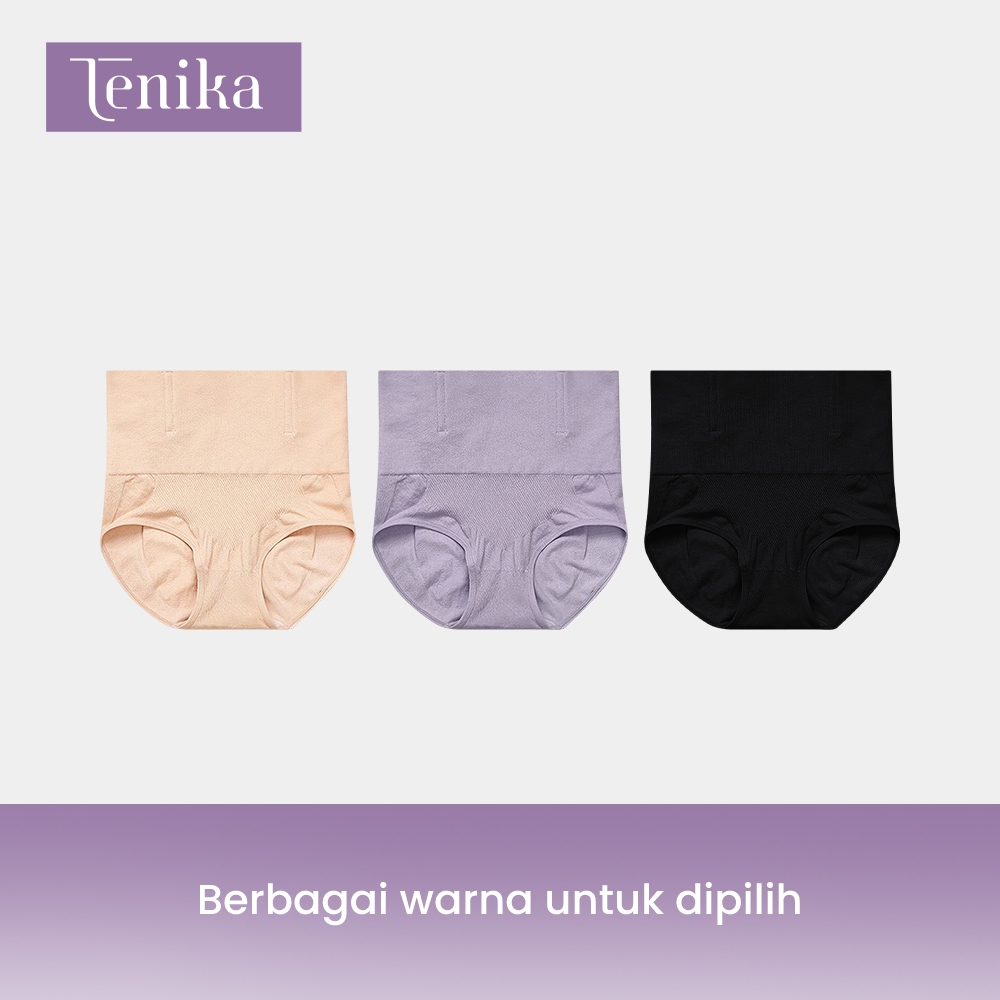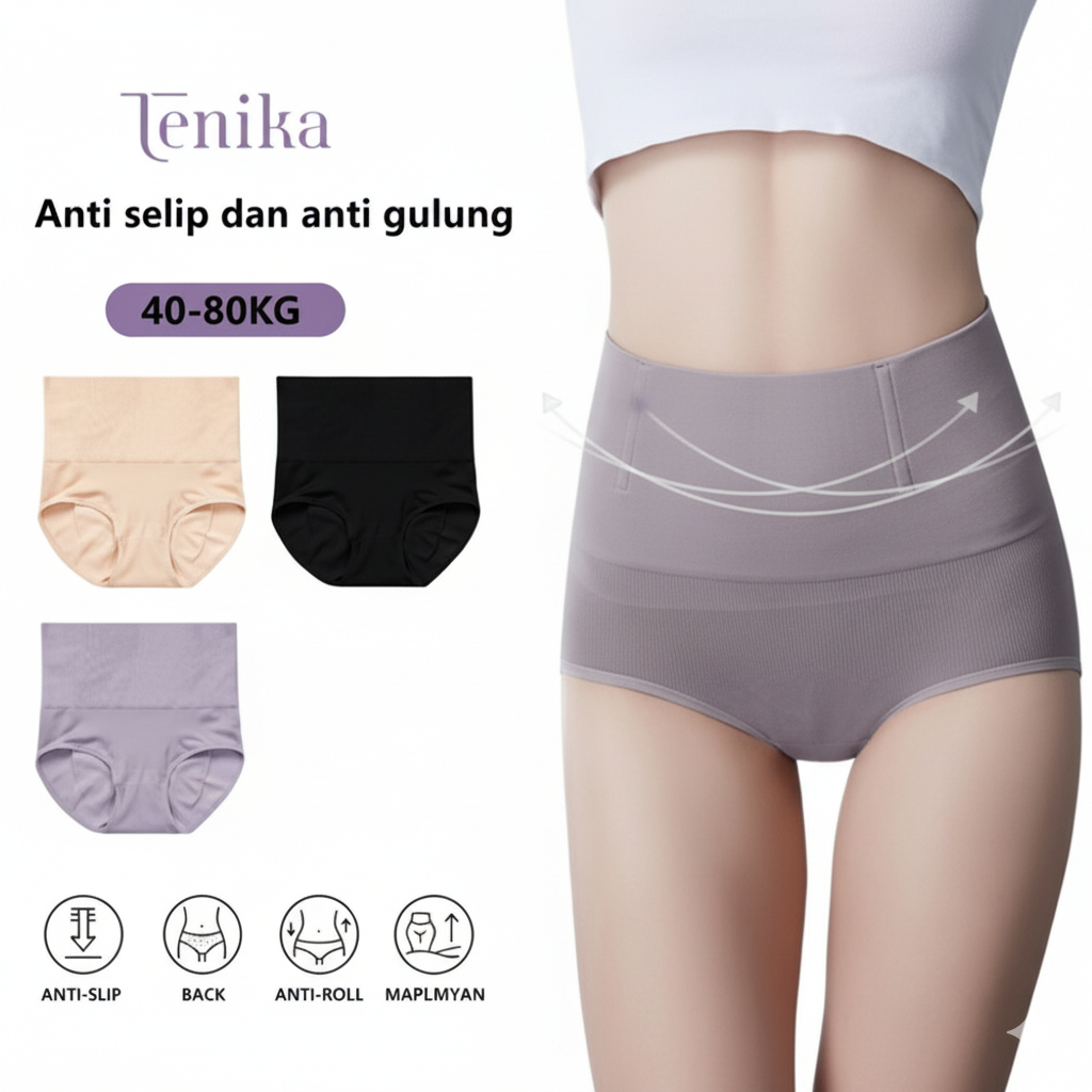 Tenika Celana Dalam Pinggang Tinggi Pelangsing Flat Tummy, Honeycomb Breathable, Anti Gulung Nyaman & Menyokong Peru Mur