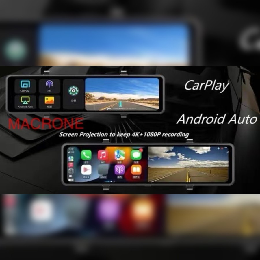 KAMERA DASHCAM DVR SPION MACRONE 4K+1080P SUPPORT CARPLAY & ANDROID AUTO 11"26 INCH - TANPA MEMORY