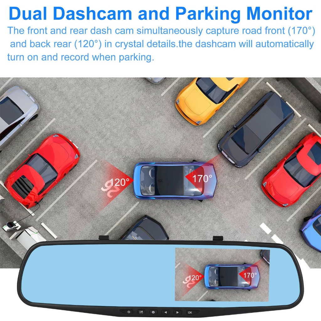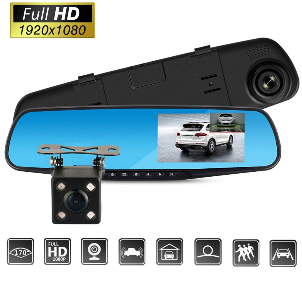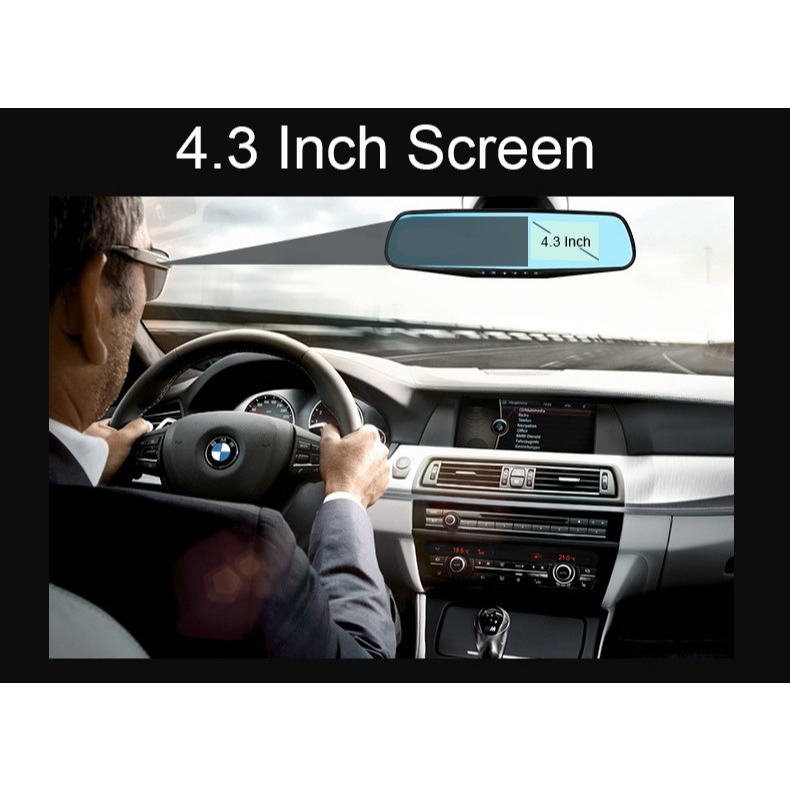Kaca Spion Kamera Dasbor DVR Dual Kamera Dashcam 1080P 4.3Inch Depan Belakang Camera Perekam Mobil