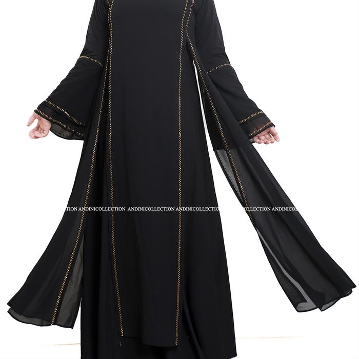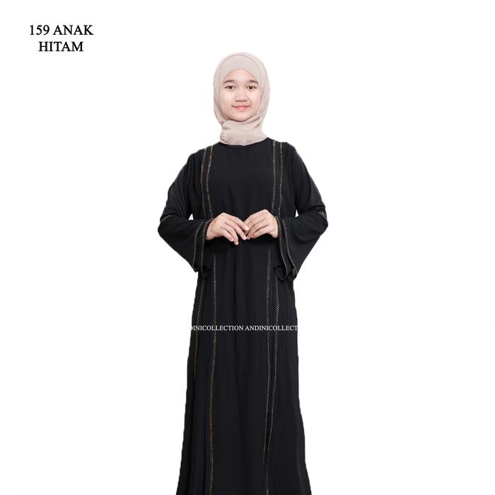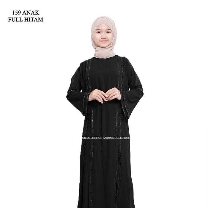 [ANAK TANGGUNG] ANDINICOLLECTION ABAYA TURKEY 159 AMARTA HITAM PUTIH MUSLIM POLOS PAYET MEWAH - HITAM, M