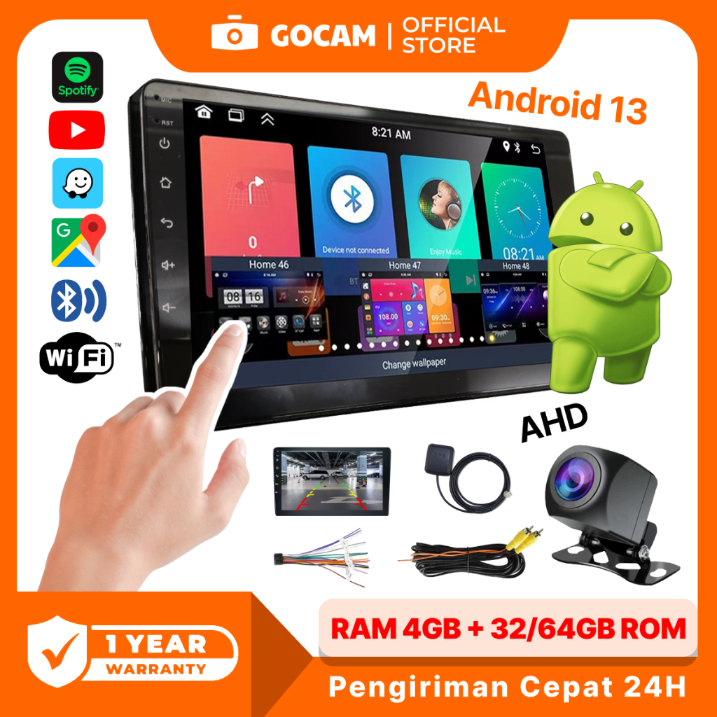 GOCAM Head Unit Androi Mobil 4+32/64GB + Kipas Pendingin Car WIFI Android 13 GPS Navigasi Kamera Mundur Multimedia