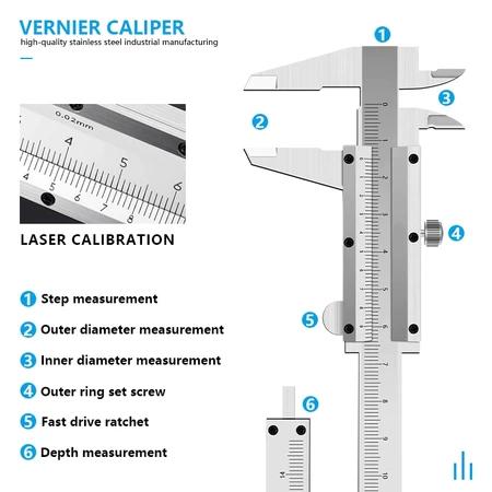 CASTA 150mm Jangka sorong stainless Vernier Caliper Manual Vernier Caliper Ruler Kkuningan kotak