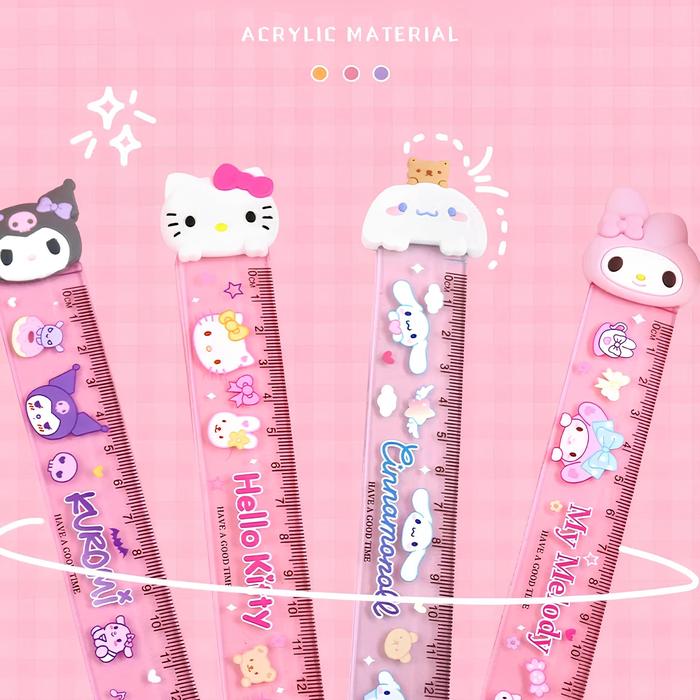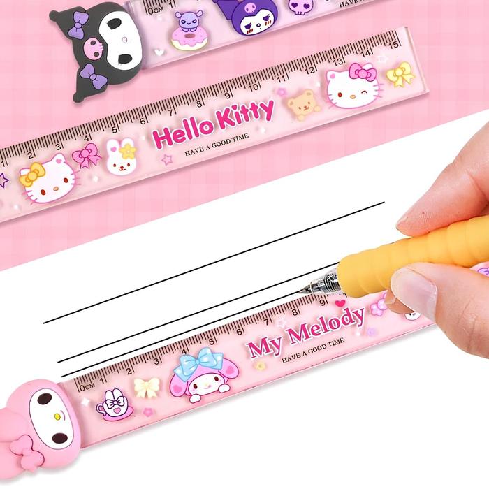 Ruler Lucu Penggaris Head Rubber Premium Karakter Ukuran 15cm Sekolah - He llo Kit ty
