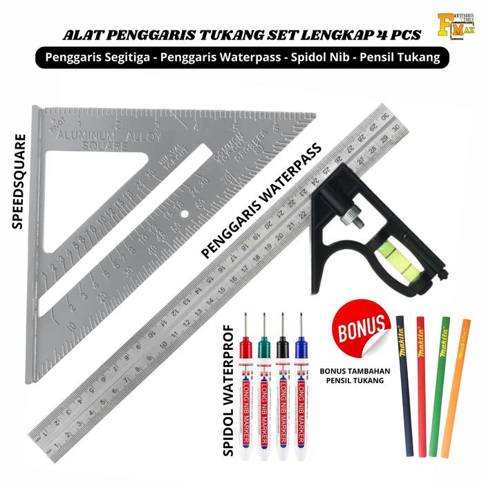 Paket 4 Pcs Penggaris Speed Square 7inch Rafter Square Penggaris Sudut Siku Pasekon Waterpass Siku Tukang - PAKET 4PCS