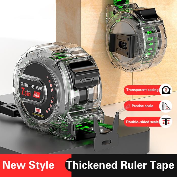 Meteran Pita Pengukur Baja 10/5M Penggaris Fluoresensi Transparan Penggaris Pengukur Presisi Tinggi - 5m*25mm